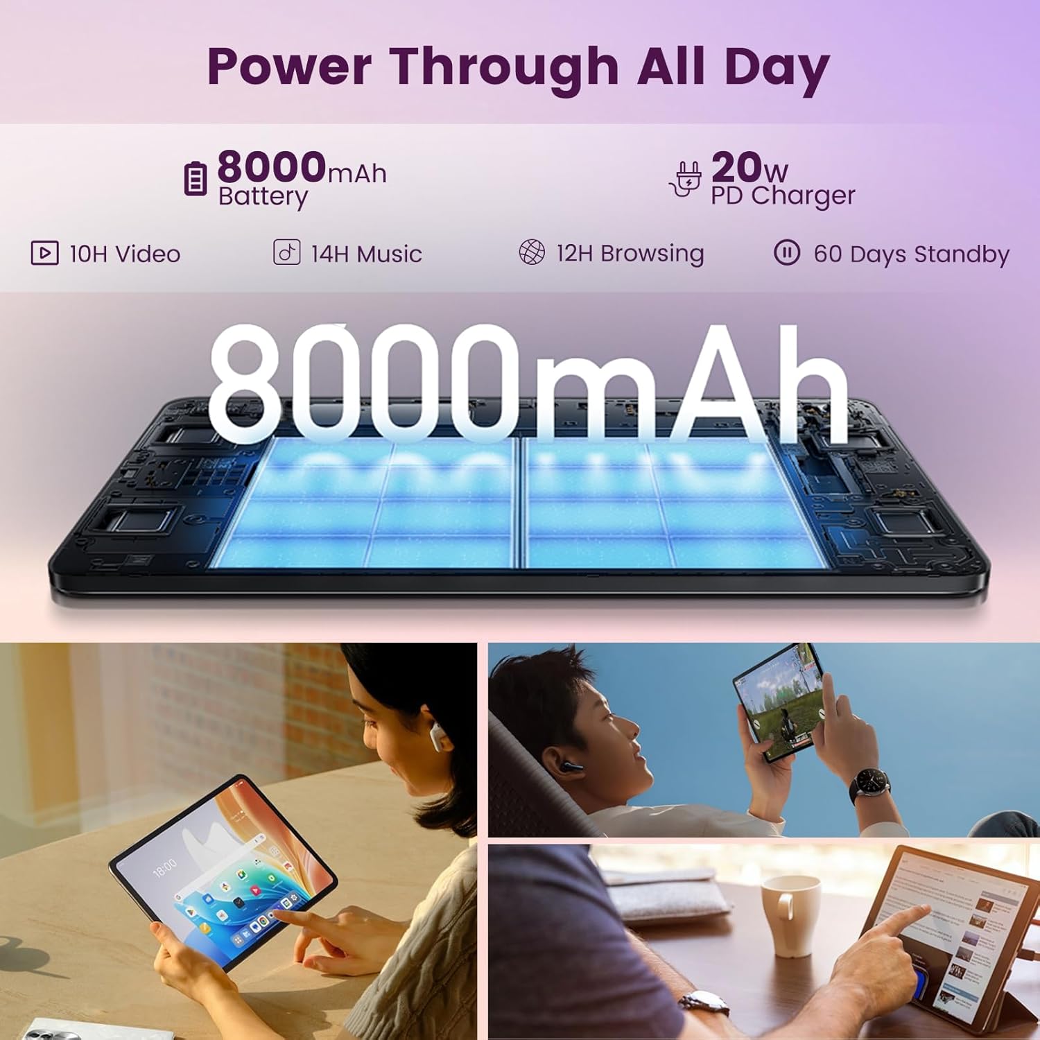 - 【All-Day Battery & 20W Fast Charging】The large battery - 8000mAh battery provides up to 10 hours of use. 20W PD fast charging refuels your device quickly for on-the-go lifestyles. Never worry about battery life again.