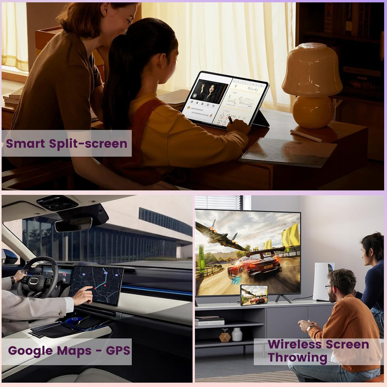 - 【Smart & Convenient Features】The 12'' tablet built-in GPS supports navigation and location-based apps. Boost your productivity with split-screen multitasking in the android tablet, you can share content easily via screen mirroring and enjoy instant, secure access with Face Unlock. Meanwhile Parental control mode helps manage screen time and content for kids. This large tablet makes your life more convenient and smarter.