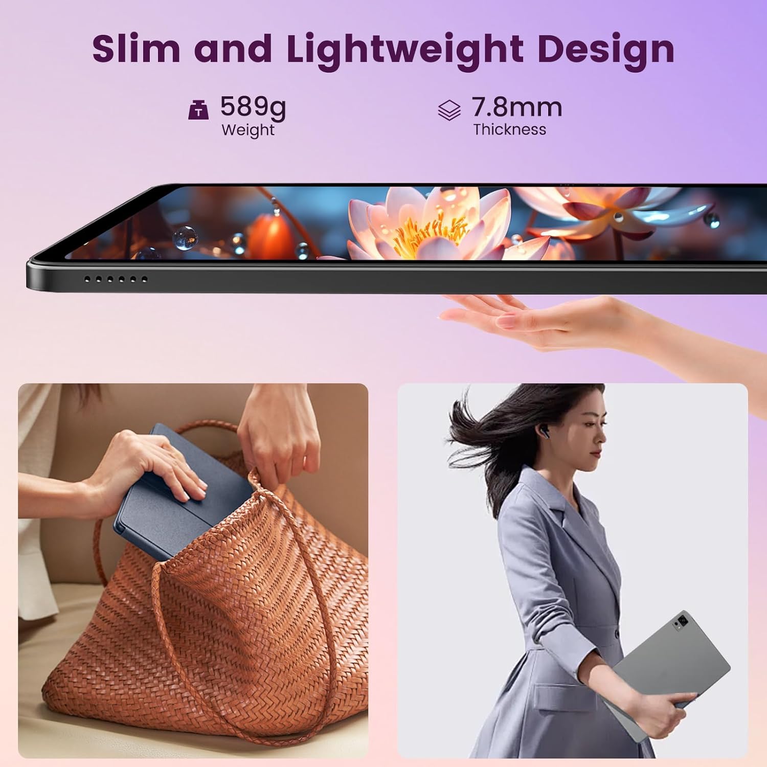 - 【Seamless Connectivity Meets Portability】With advanced Wi-Fi 6 & BT 5.0, the 12 inch tablet offer stable & high-speed connections for streaming and peripheral pairing. All this power is packed into a sleek, lightweight body under 600g, making it your perfect on-the-go companion for work and entertainment.